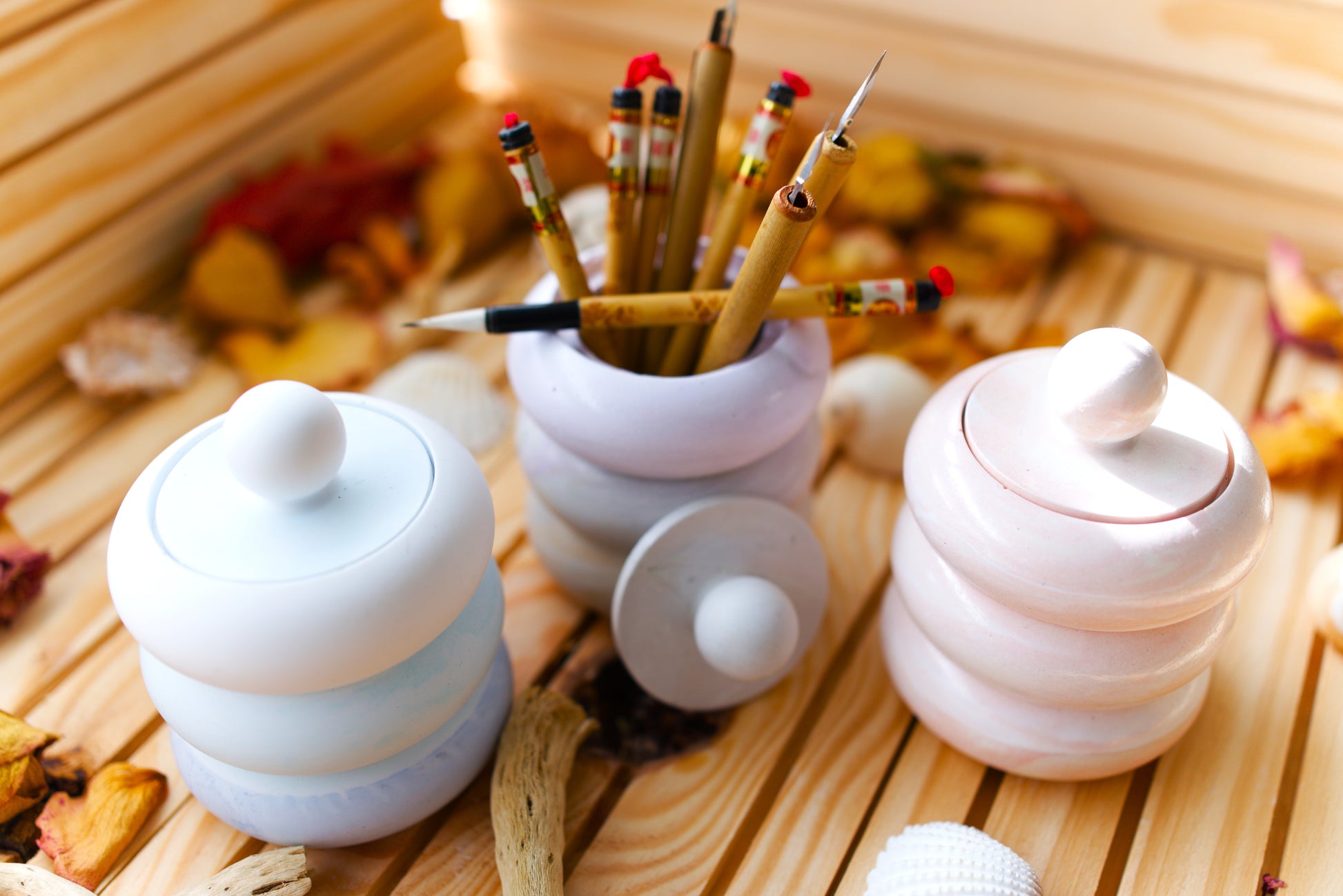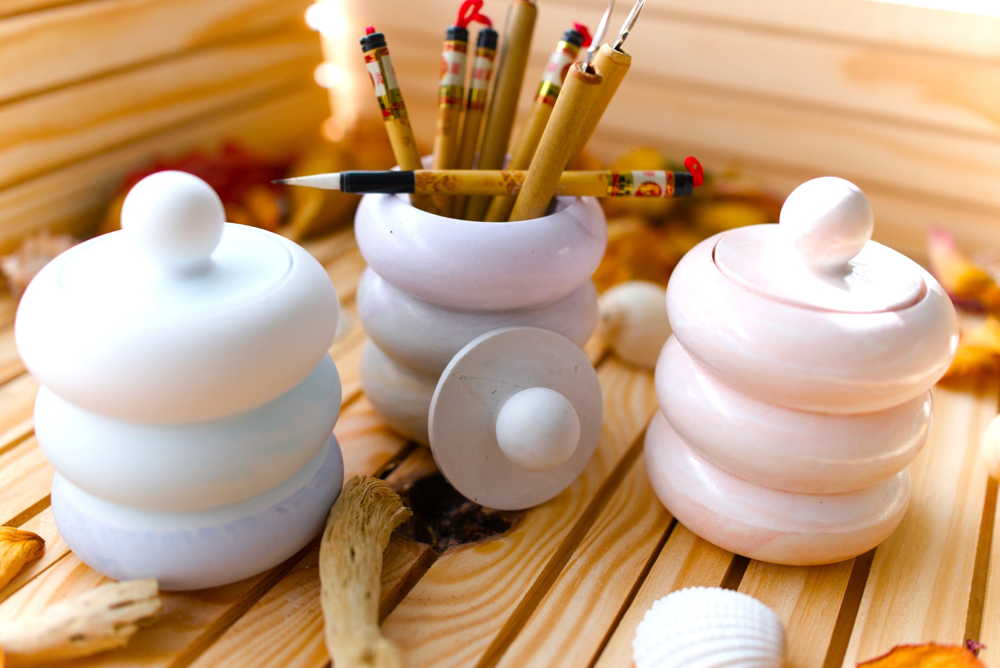 Boîte ronde design en céramique – Rangement déco minimaliste – Vide-poches avec couvercle