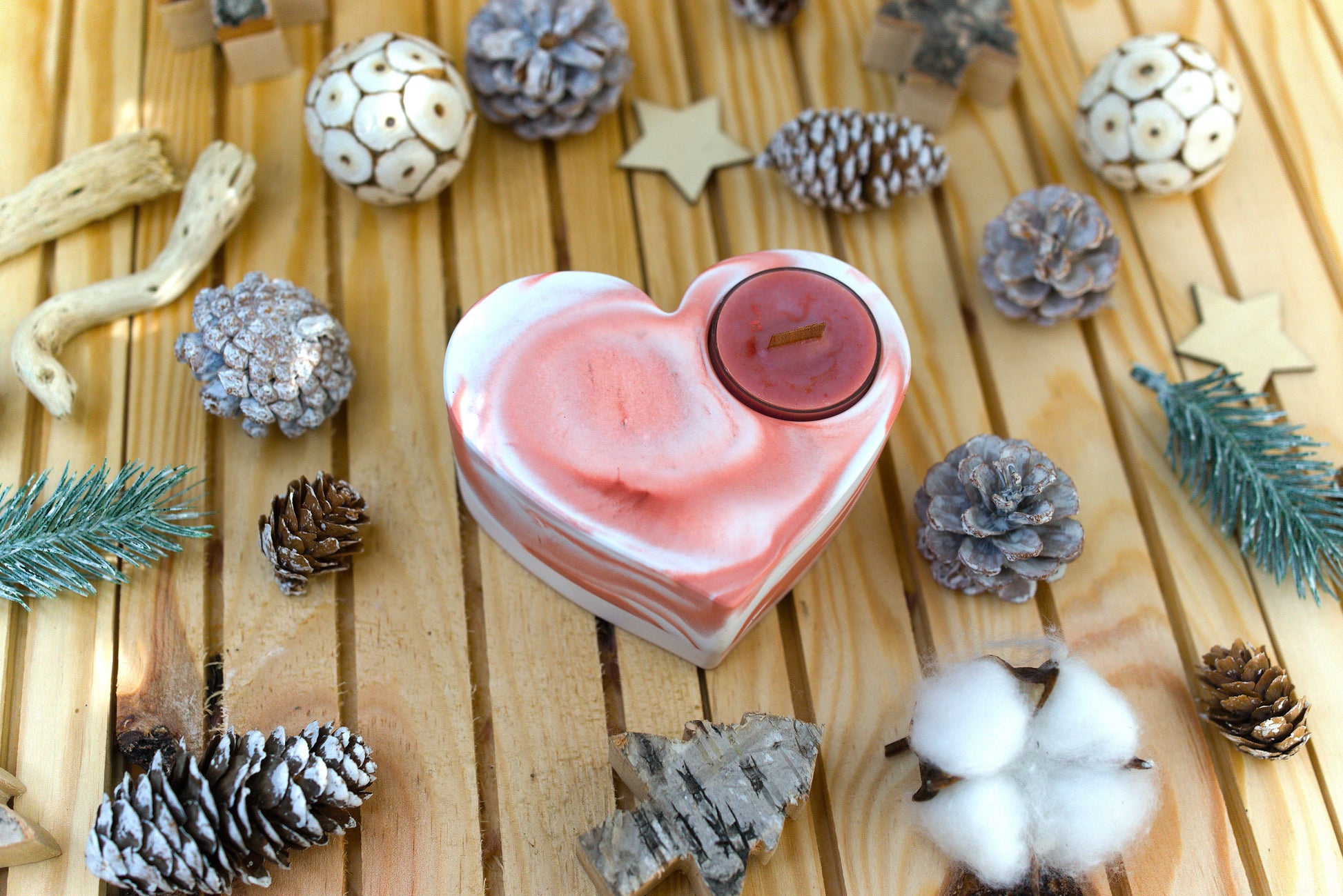 Apportez une touche romantique et chaleureuse à vos soirées avec ce bougeoir en céramique en forme de cœur. Sa finition marbrée rose et blanche lui confère un style unique et élégant, parfait pour une décoration de table, un dîner en amoureux ou un cadeau plein de tendresse.