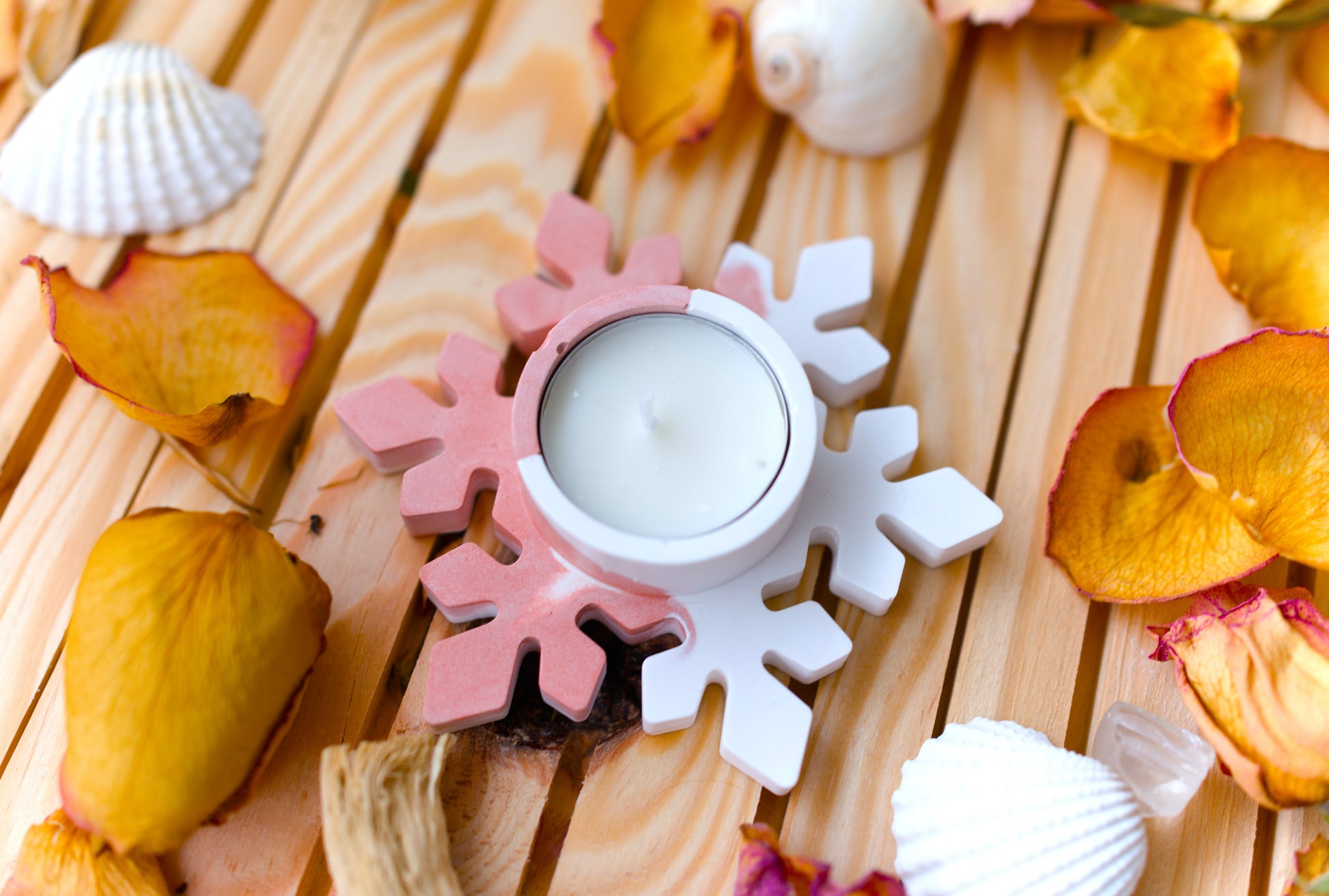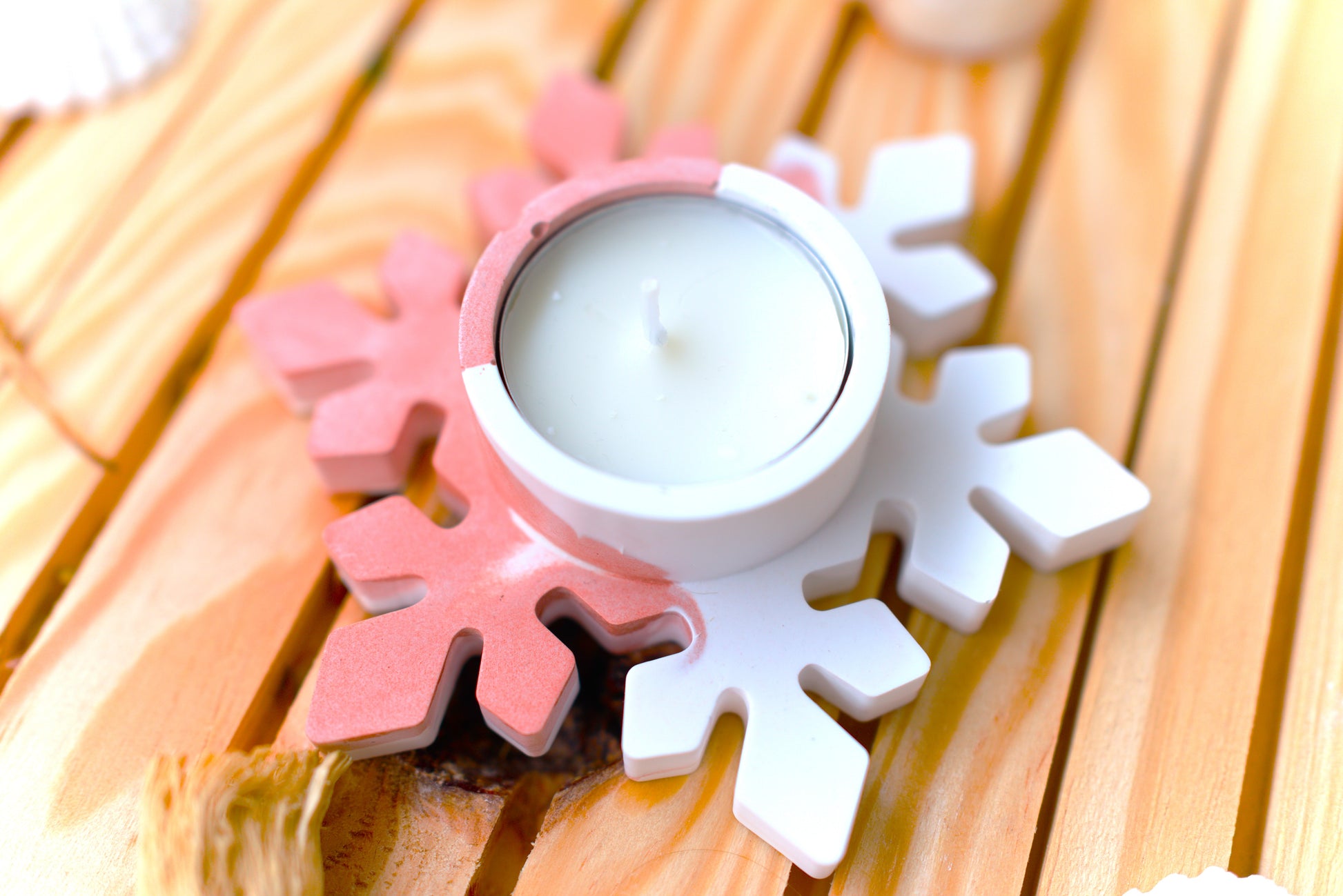 Bougeoir flocon de neige en céramique – Décoration de table de Noël – Support pour bougie chauffe-plat
