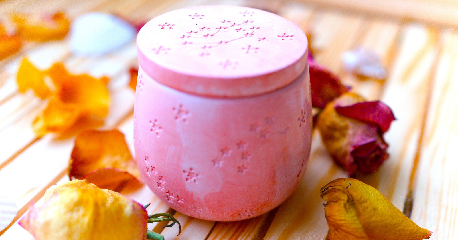 Pot en céramique rose avec motifs de petites étoiles gravées