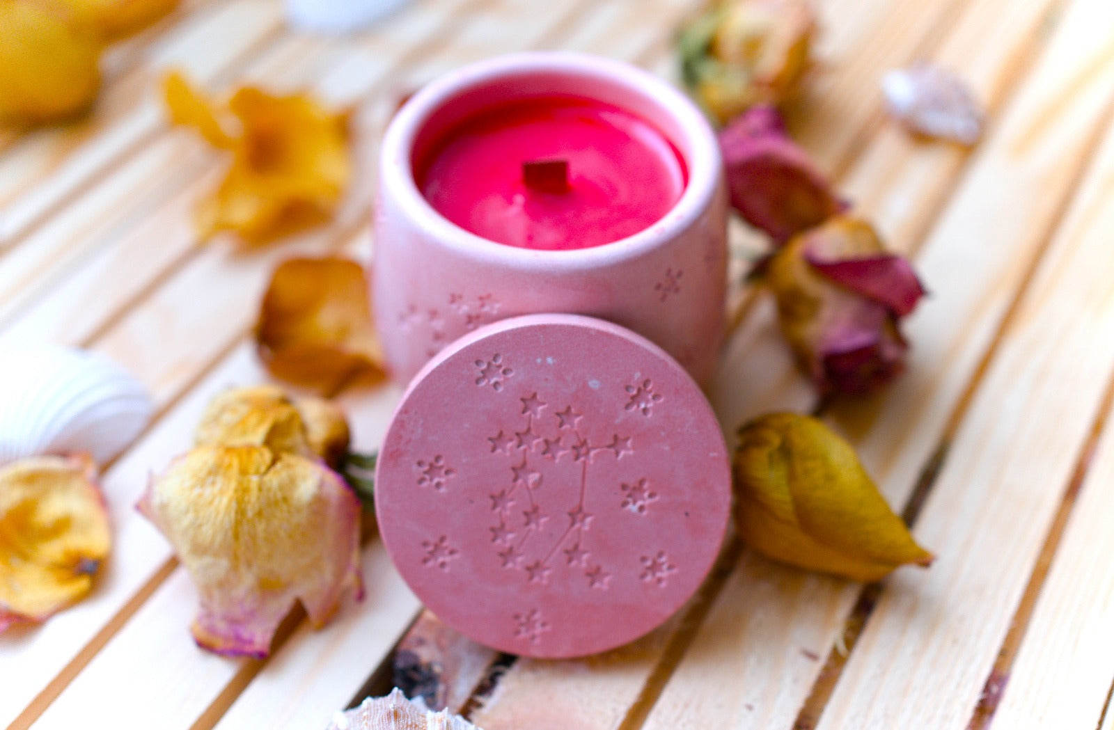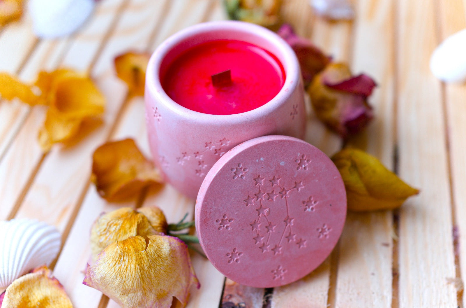 Apportez une touche de douceur et d’élégance à votre intérieur ou à vos soirées d’été avec cette bougie artisanale. Coulée à la main dans un joli pot en céramique rose décoré de motifs étoiles en relief, elle allie charme et authenticité.