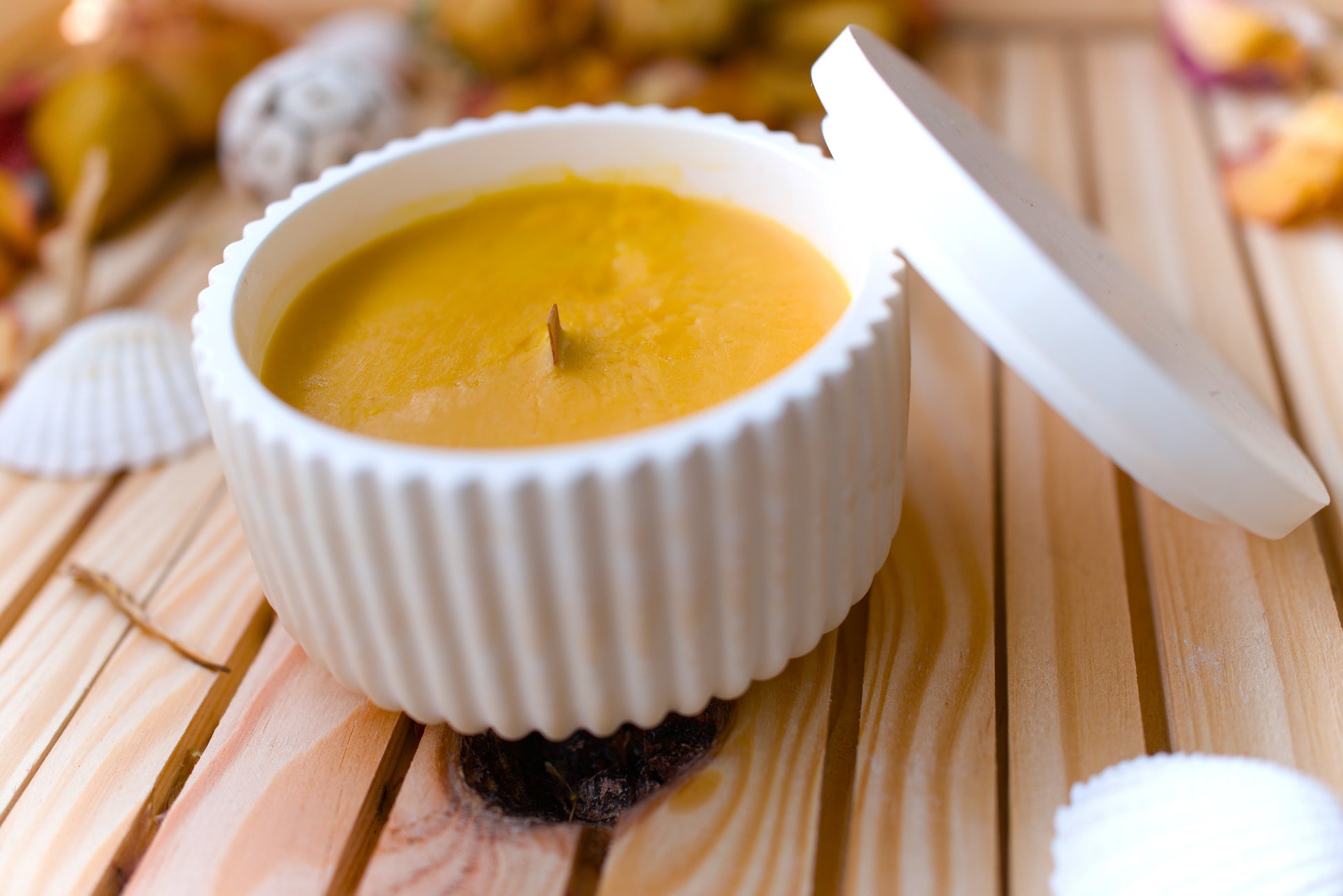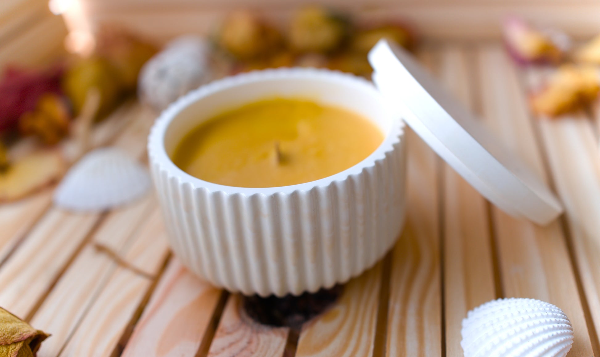 Bougie pot décoratif à stries avec couvercle - Pièce artisanale unique