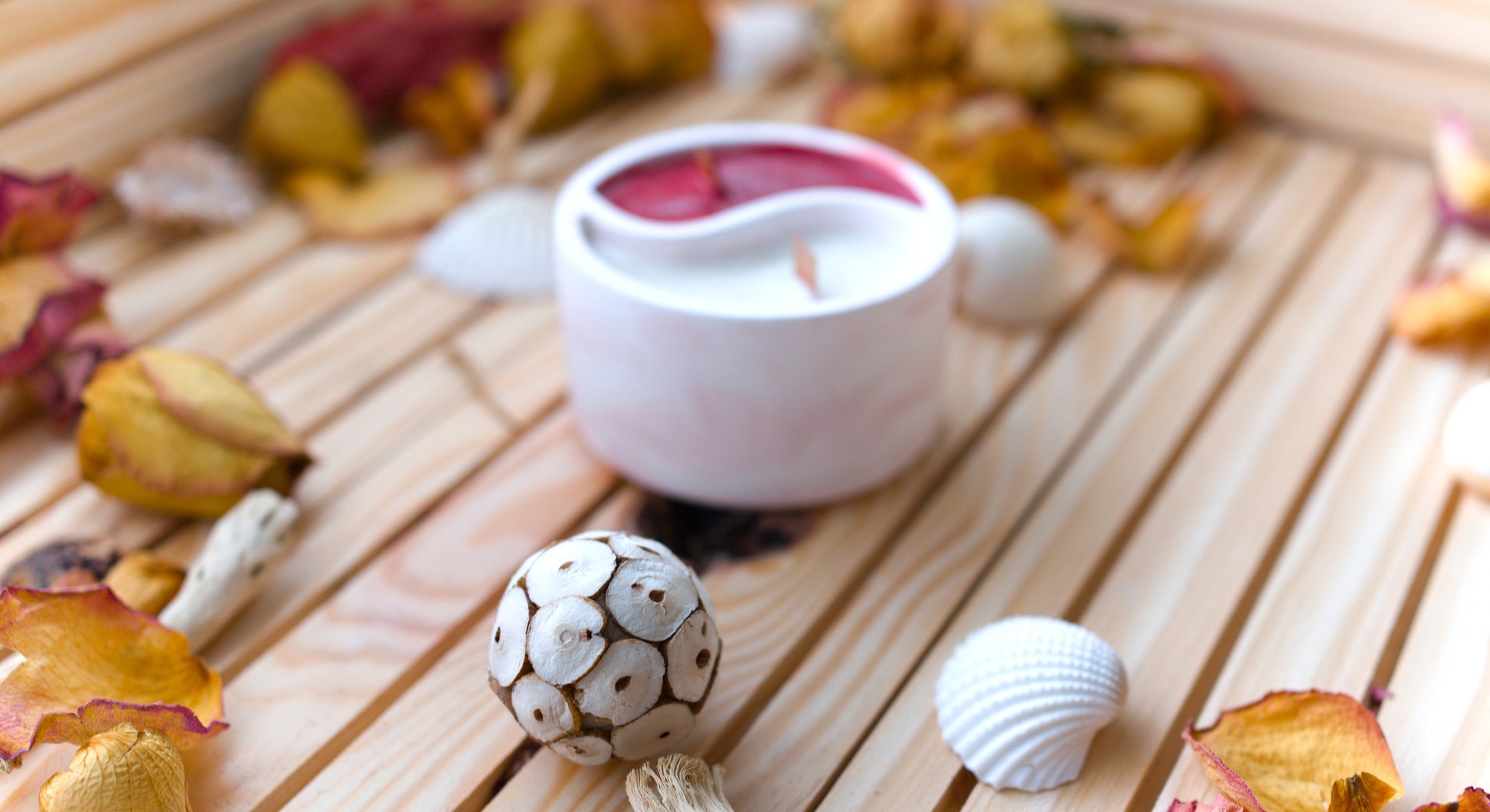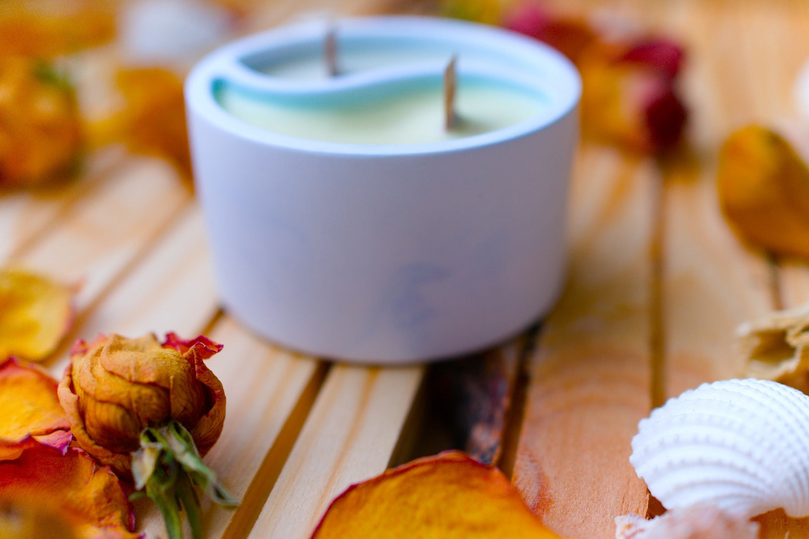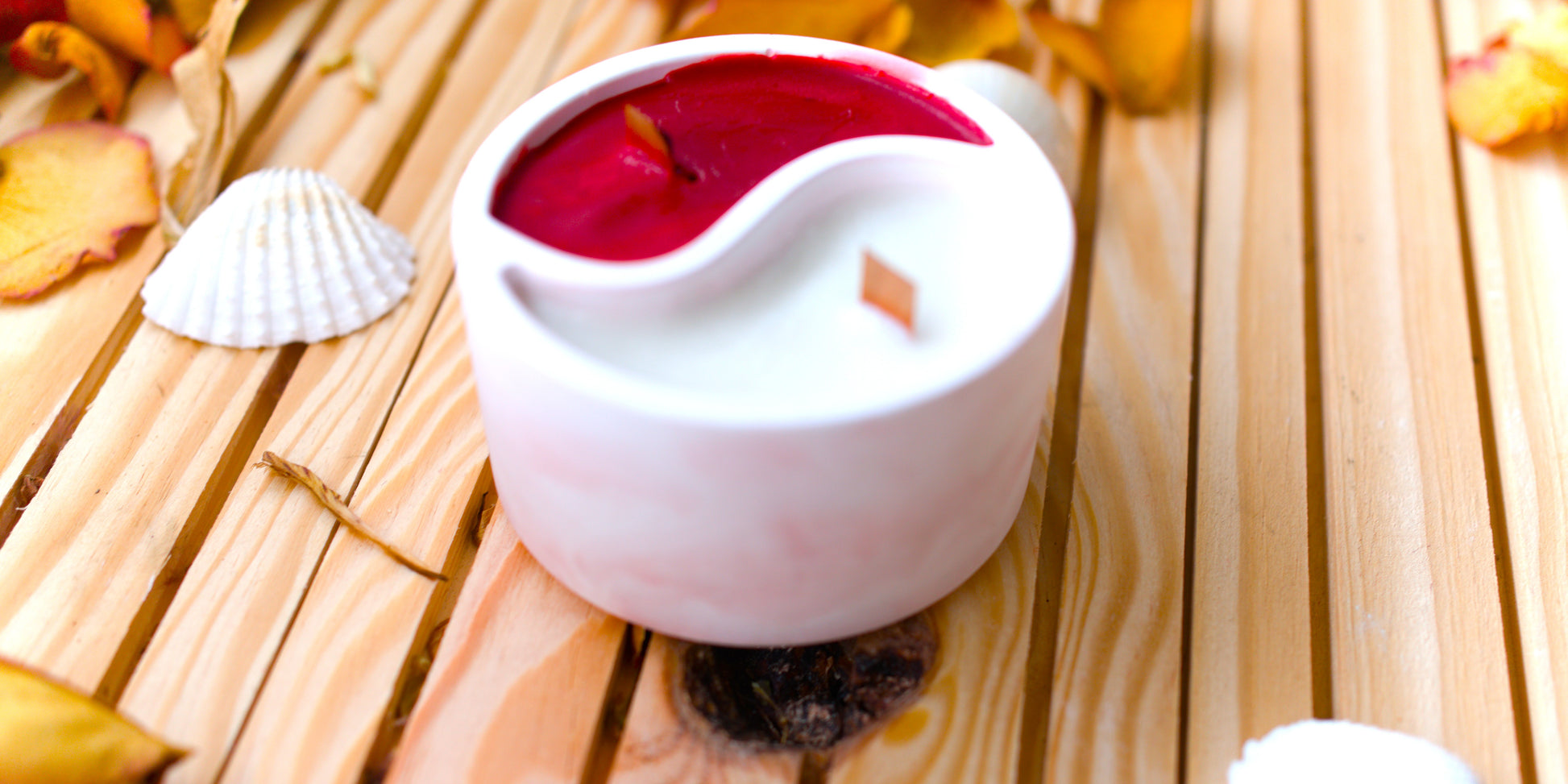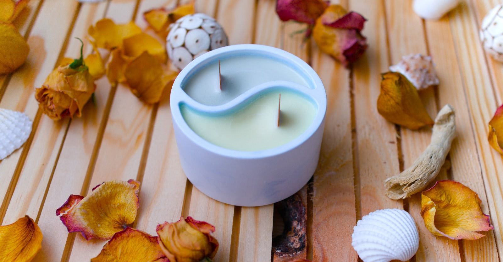 Bougie yin-yang artisanale – Cire végétale et mèches en bois