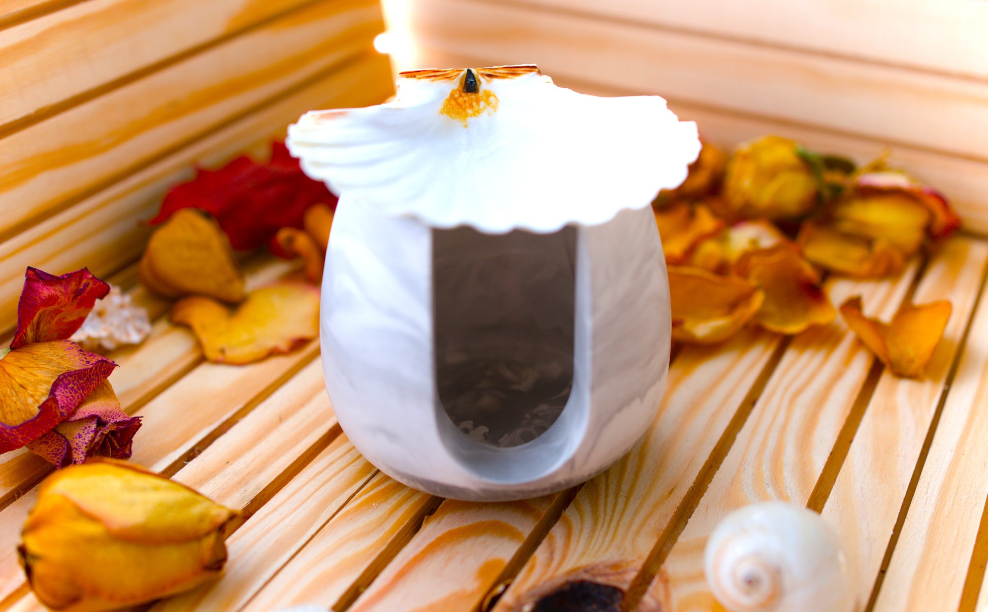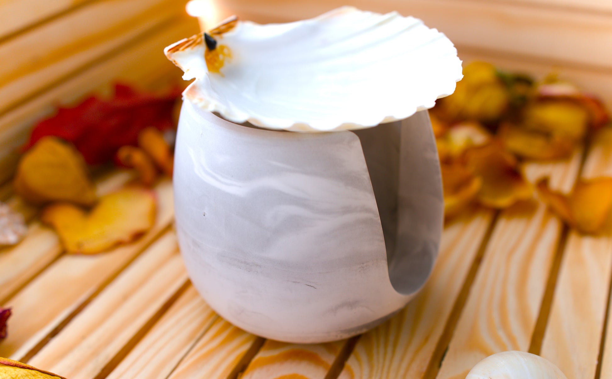 Il suffit de placer une bougie chauffe-plat à l’intérieur et un fondant parfumé sur la coquille : la chaleur libère progressivement les arômes pour créer une ambiance douce et apaisante.