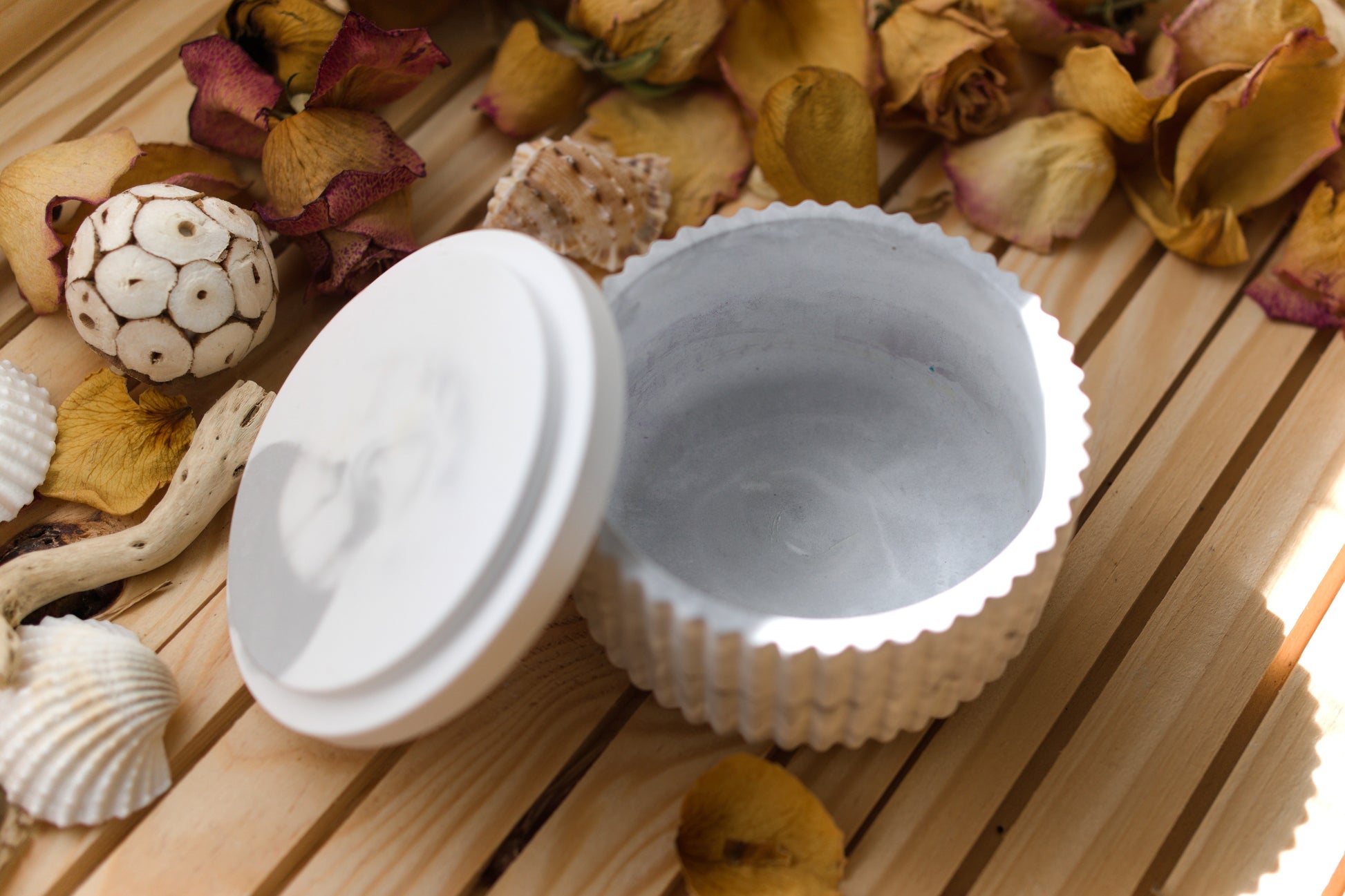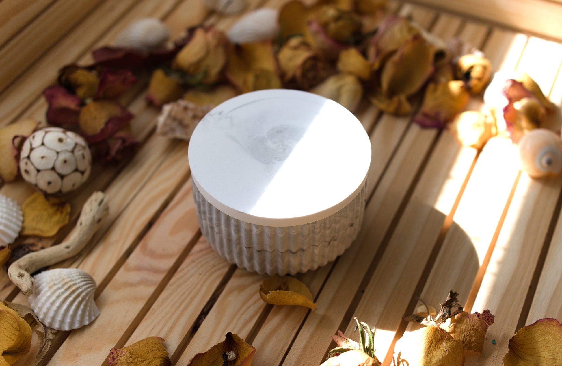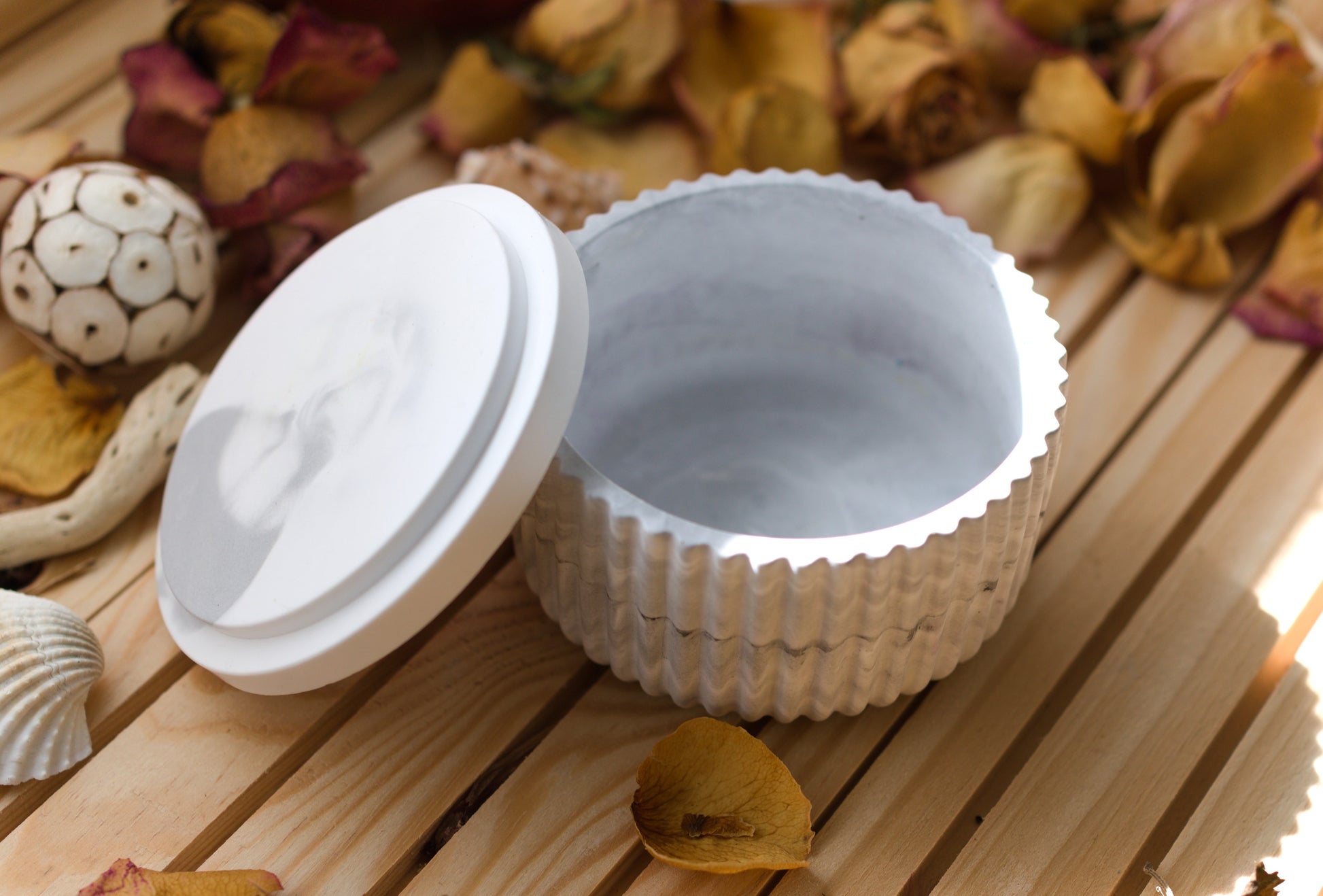 Pot décoratif à stries avec couvercle – Pièce artisanale unique - Grand Format