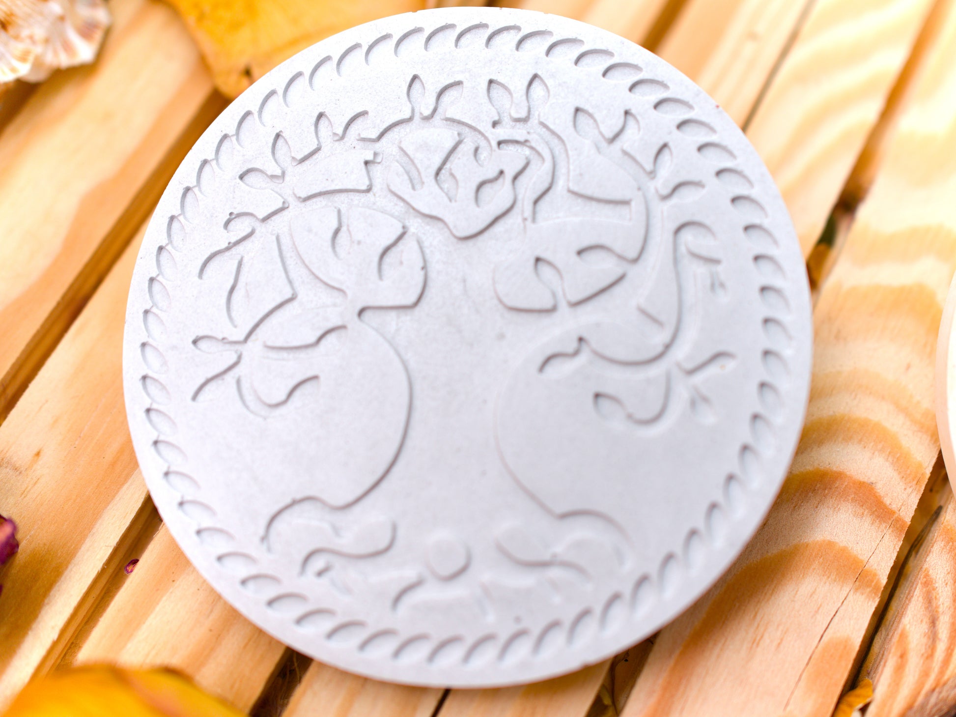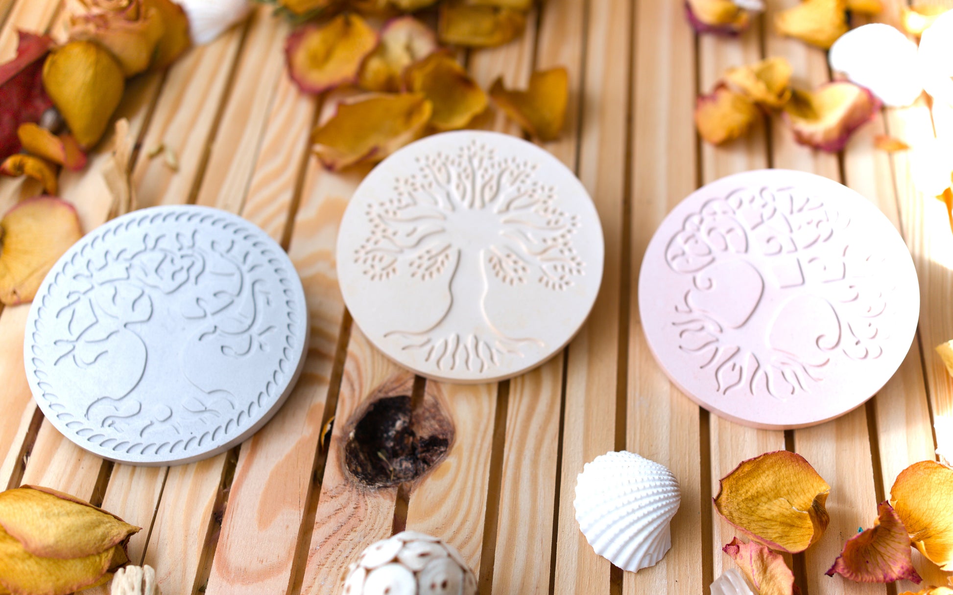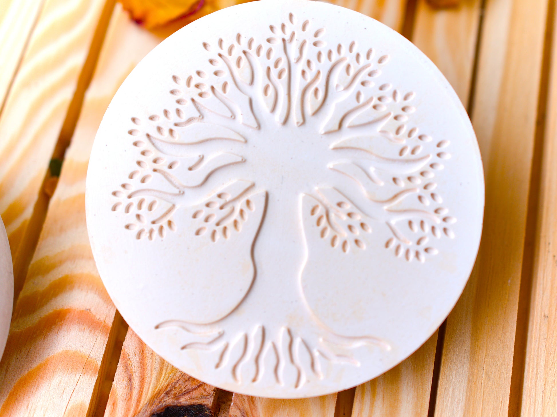 Sous-verres en céramique gravés Arbre de Vie – Lot de 3 (or, argent, bronze) – Déco artisanale et spirituelle